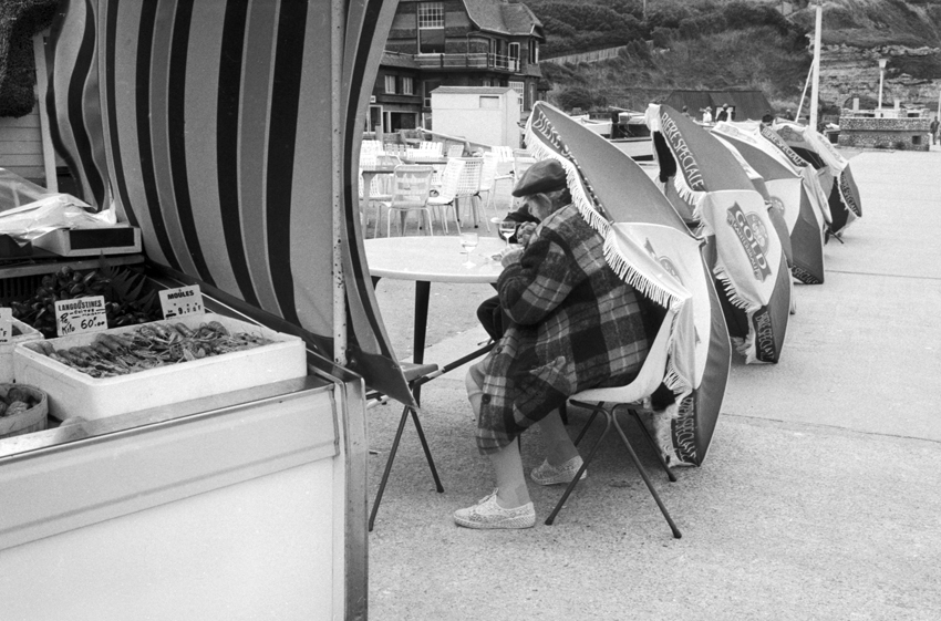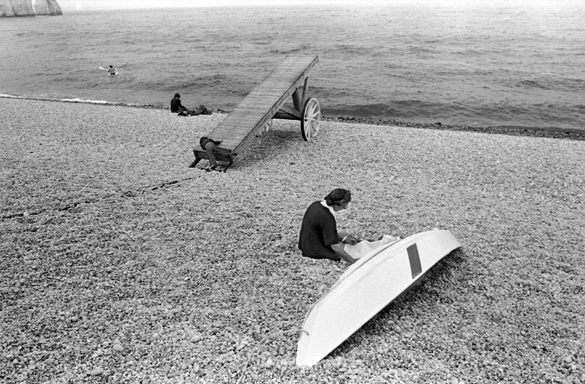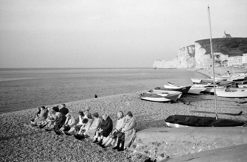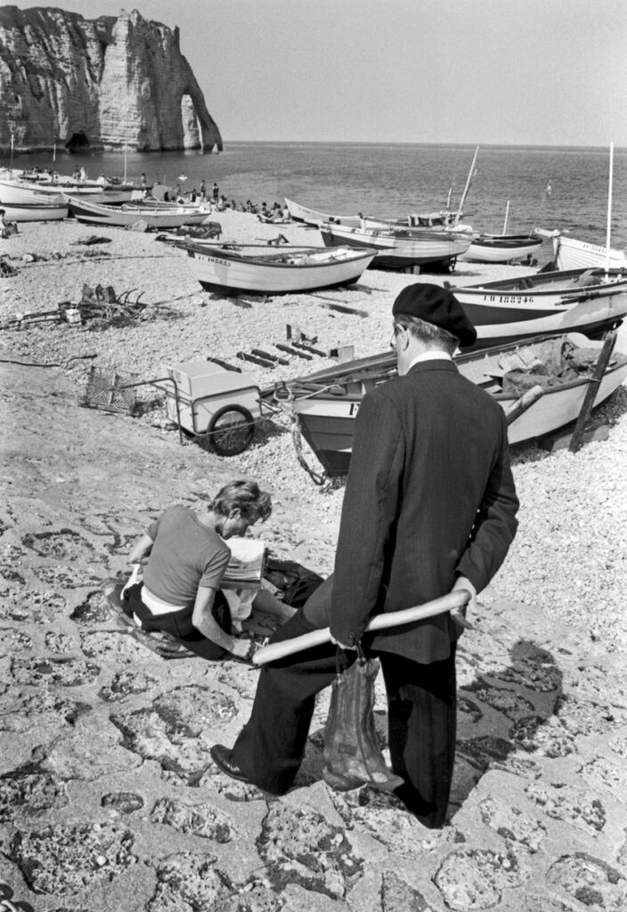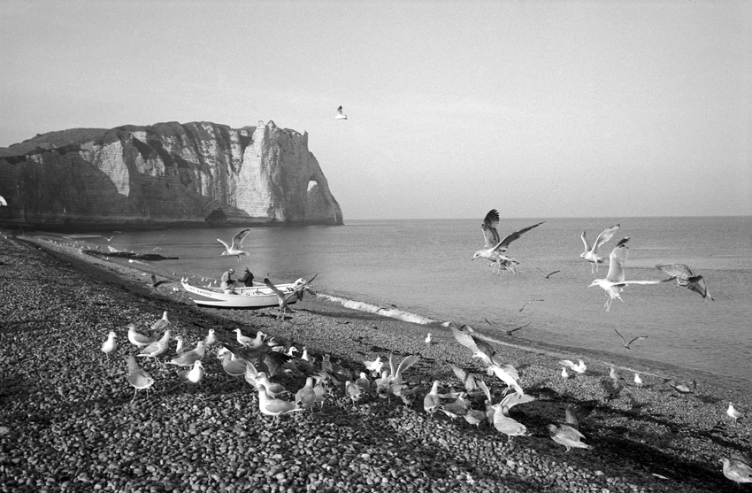 Au début des années 70, Étretat n’était pas si loin. J’habitais alors Mantes-la-Ville, dans les Yvelines, et dès que je pouvais quitter la région parisienne, je partais pour ce petit bourg et port de pêche. Déjà fasciné par la mer, j’en faisais mon terrain d’aventure photographique.